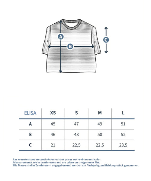 Damen-Kurzarm-T-Shirt mit Rundhalsausschnitt und verkürztem Schnitt. Es ist sehr elegant und mit seinem durchbrochenen Maschenstich auch originell.